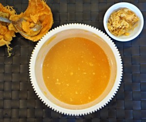 Break the wood apple with a kitchen hammer and scrape out it’s pulp using a spoon into a big bowl.