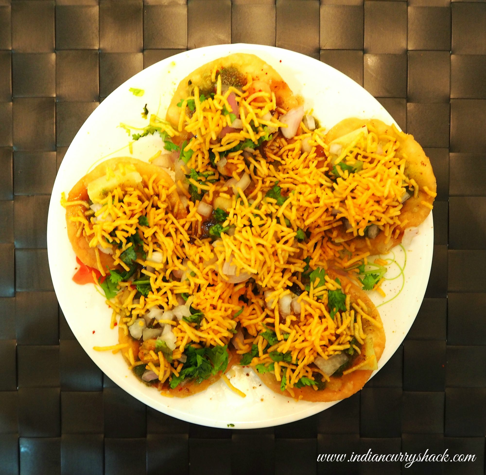 Enjoy these Papdis (Fried Flour Crispies) with a hot cup of tea or your favourite Indian Chaat (Sev Poori is in the photo below) for that bite of crisp.